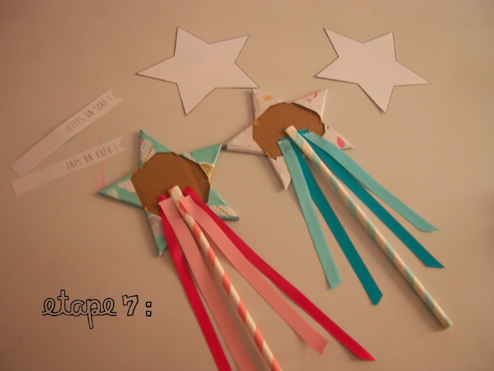 On prépare également nos rubans pour les fixer au dos des étoiles.