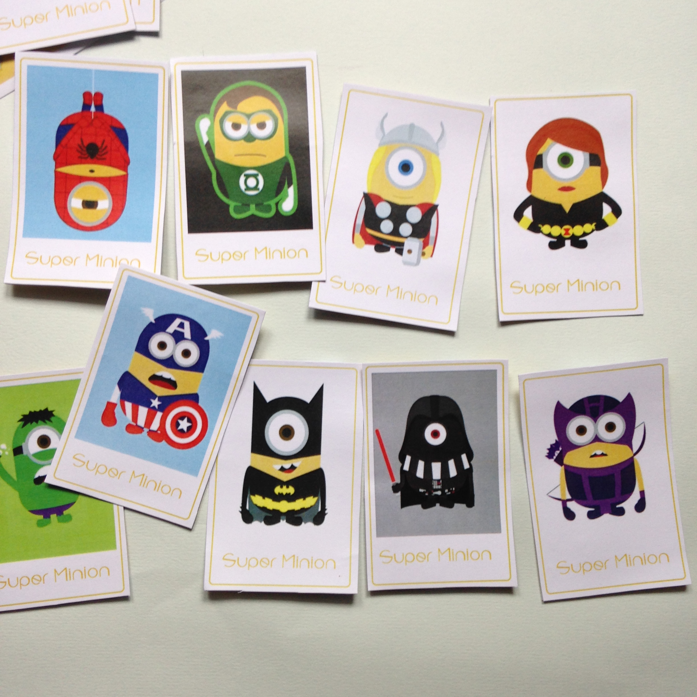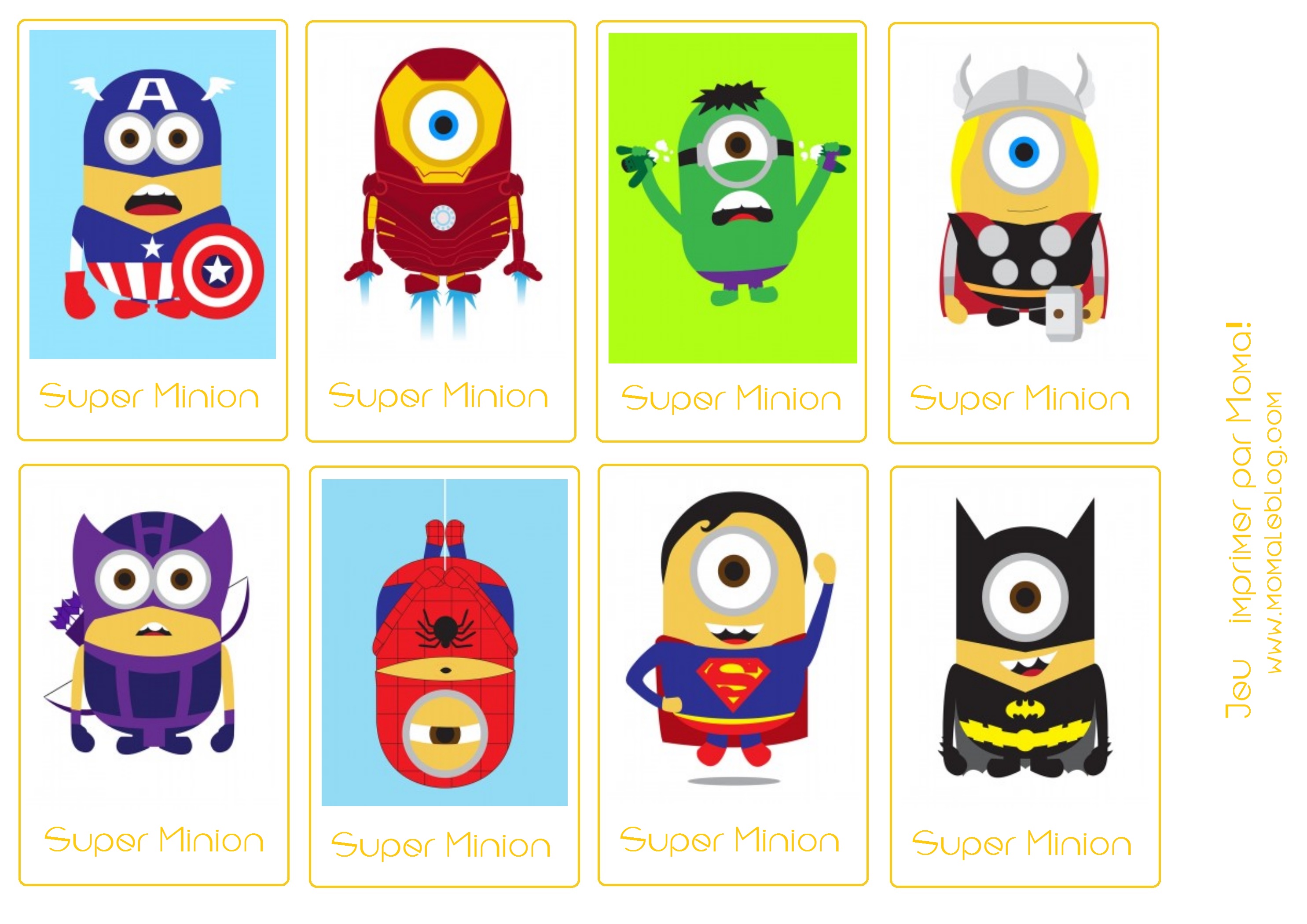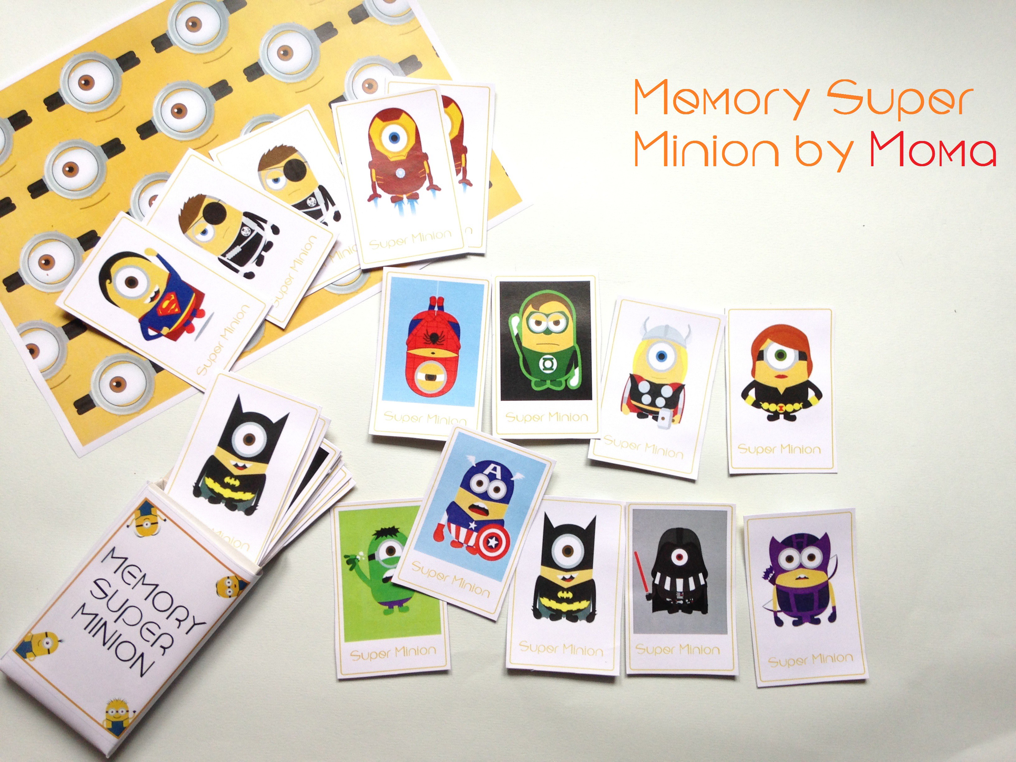 Une combinaison de minions ET de supers héros! Mais vous savez parler aux enfants. Je vais être promulguée au titre de super maman avec ce mémory! Merci!!!!