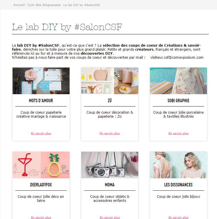 Je remercie le salon CSF puisque j’apparais deux fois sur le site: a la fois comme coup de cœur créateurs, aux côtés de créateurs que j’admire comme Zü, Petite Mila ou encore Sobigraphie!