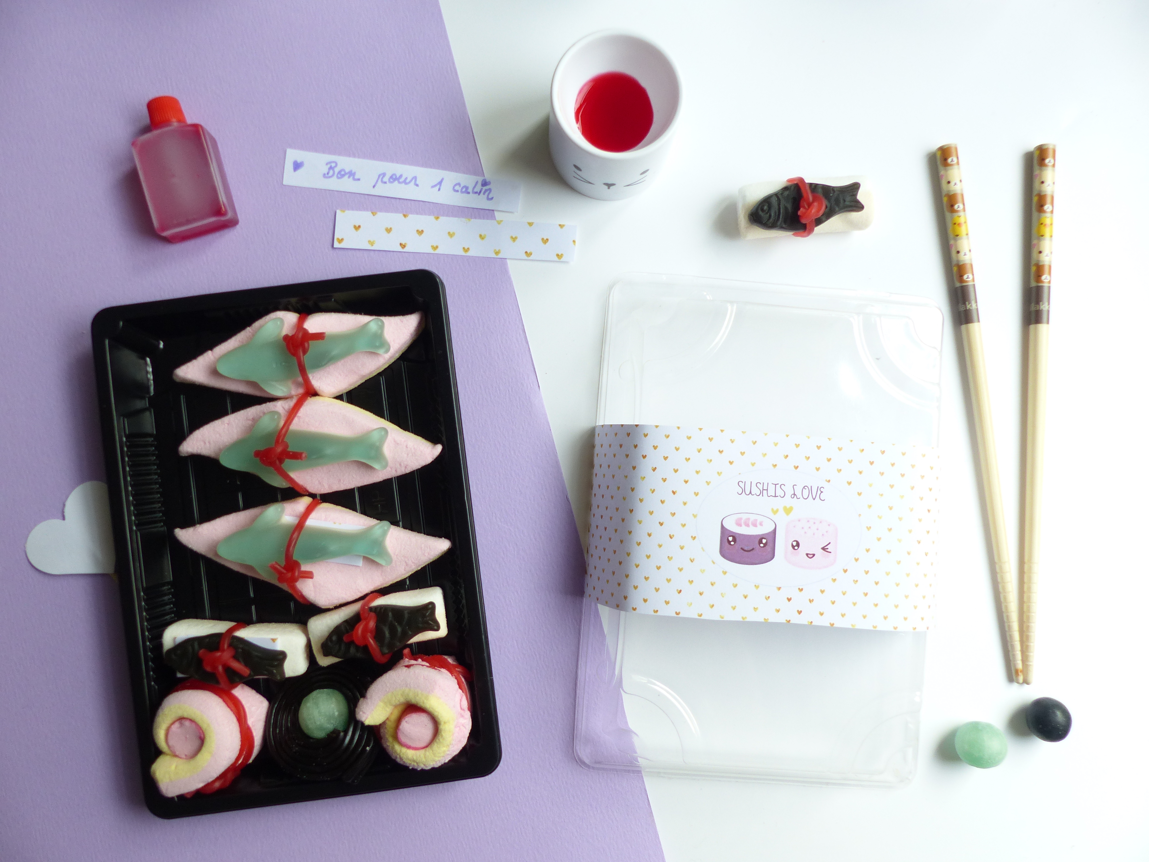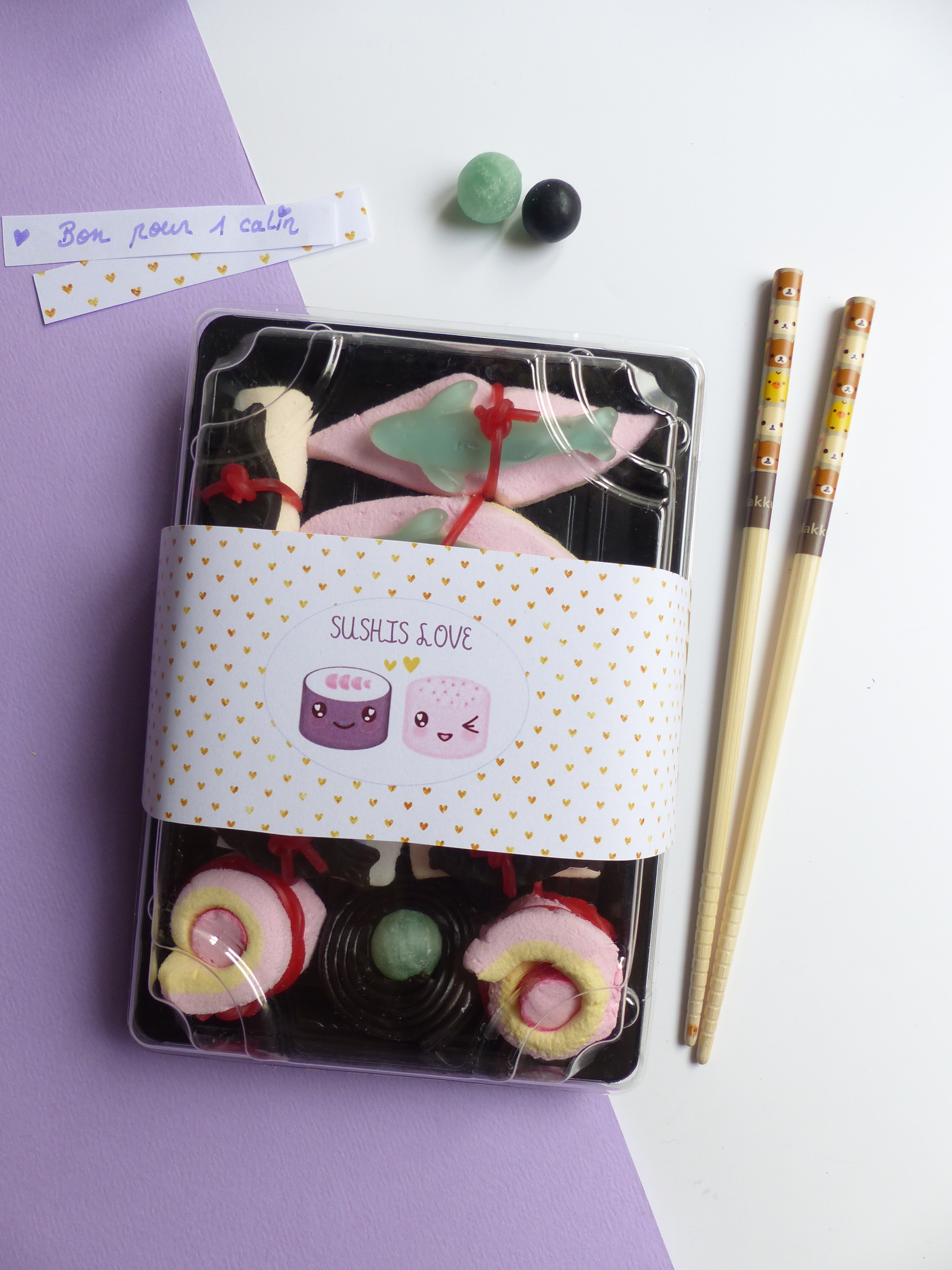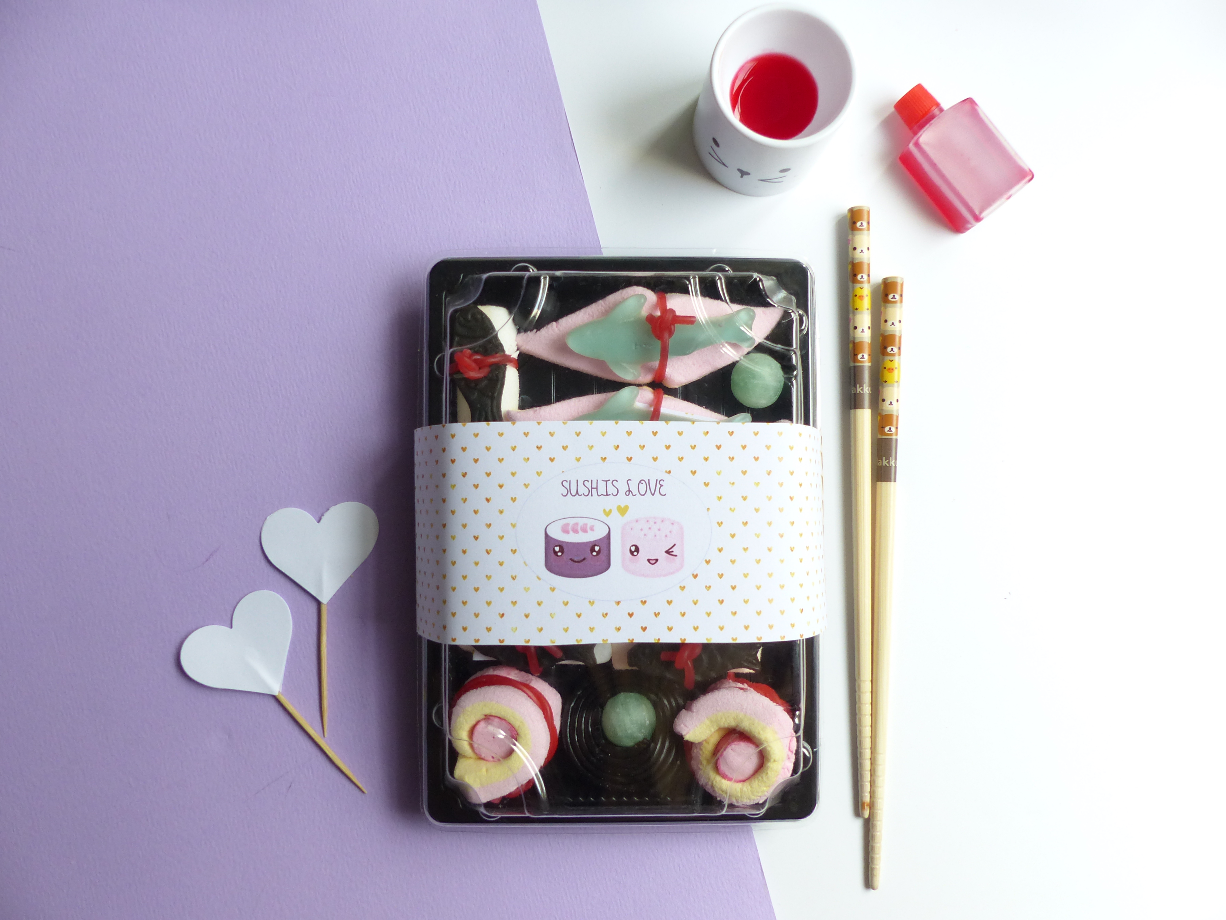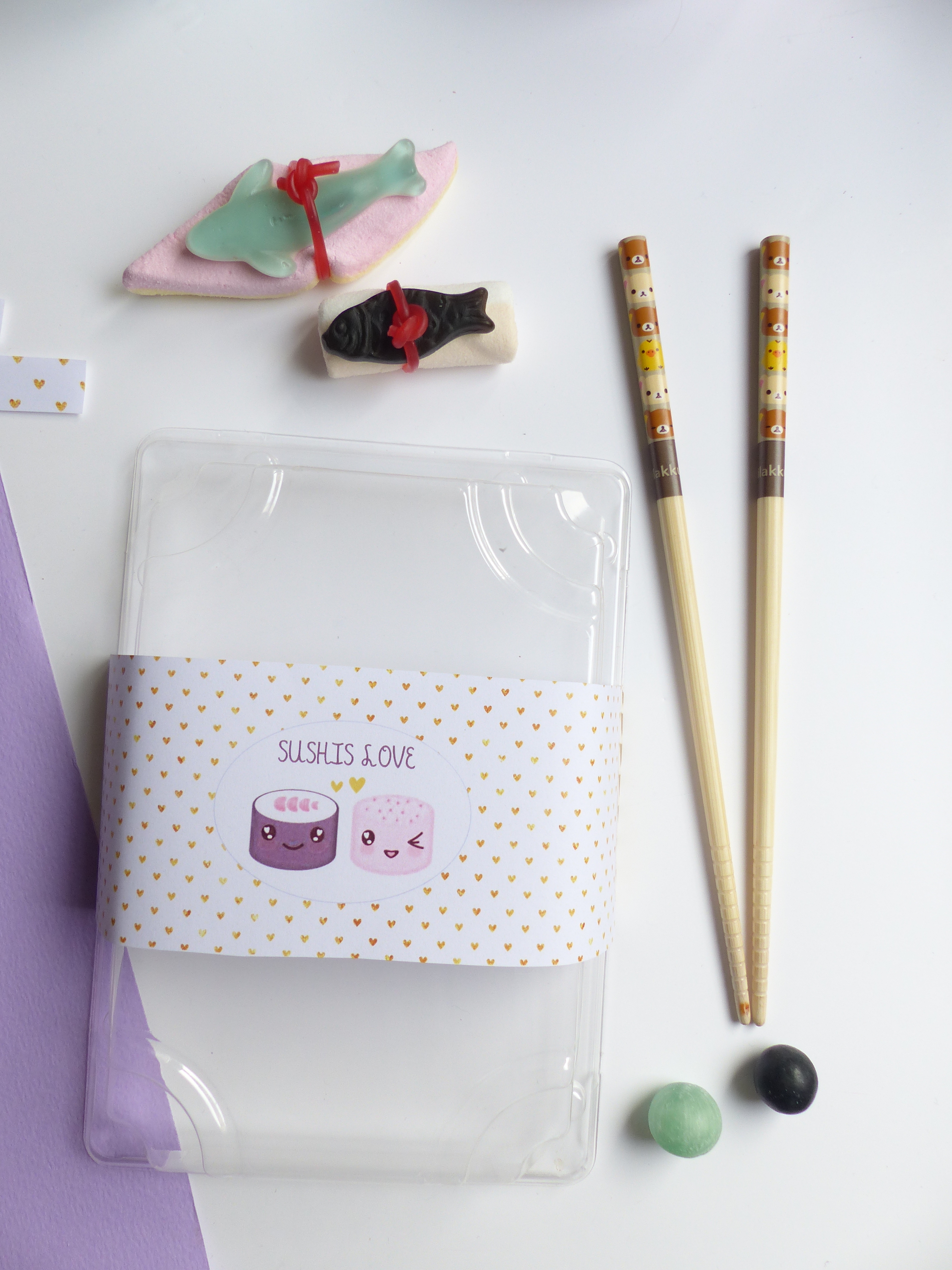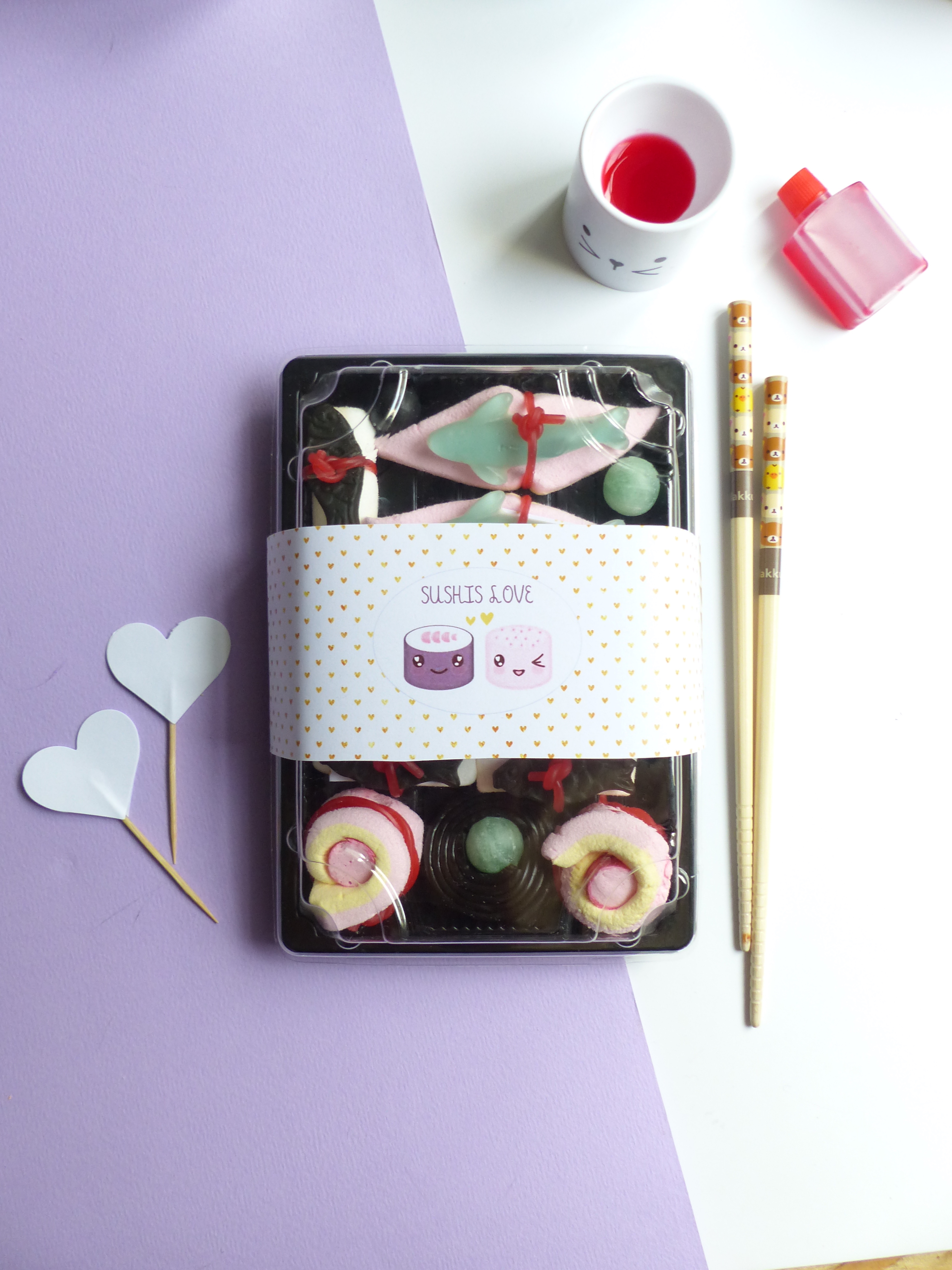 Nous allons réaliser une boîte de sushis pour amoureux ! Je vous ai même préparer de jolies étiquettes à imprimer.