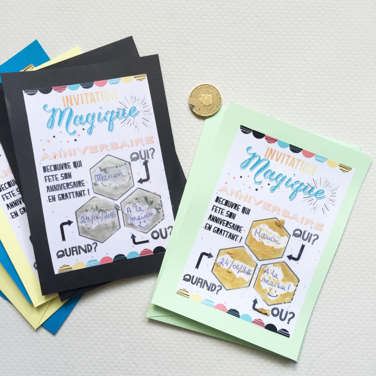bonjour, super chouette vos créations !! j’adore!!! bon je vous ai copié l’idée de la carte à gratter (trop fan!!!!… elle va essayer de glisser les invitations discrètement dans le sac des copines 😉 pour ma fille Manon !! merci beaucoup beaucoup !!