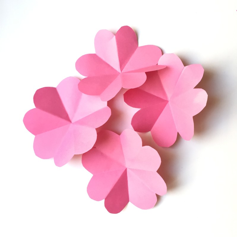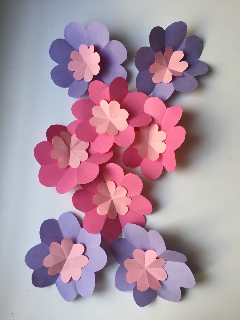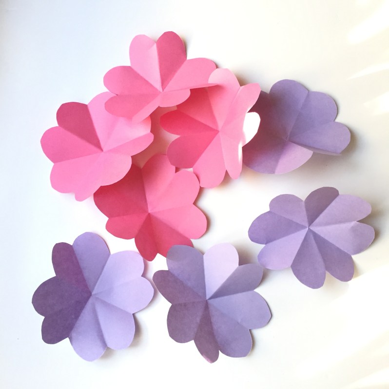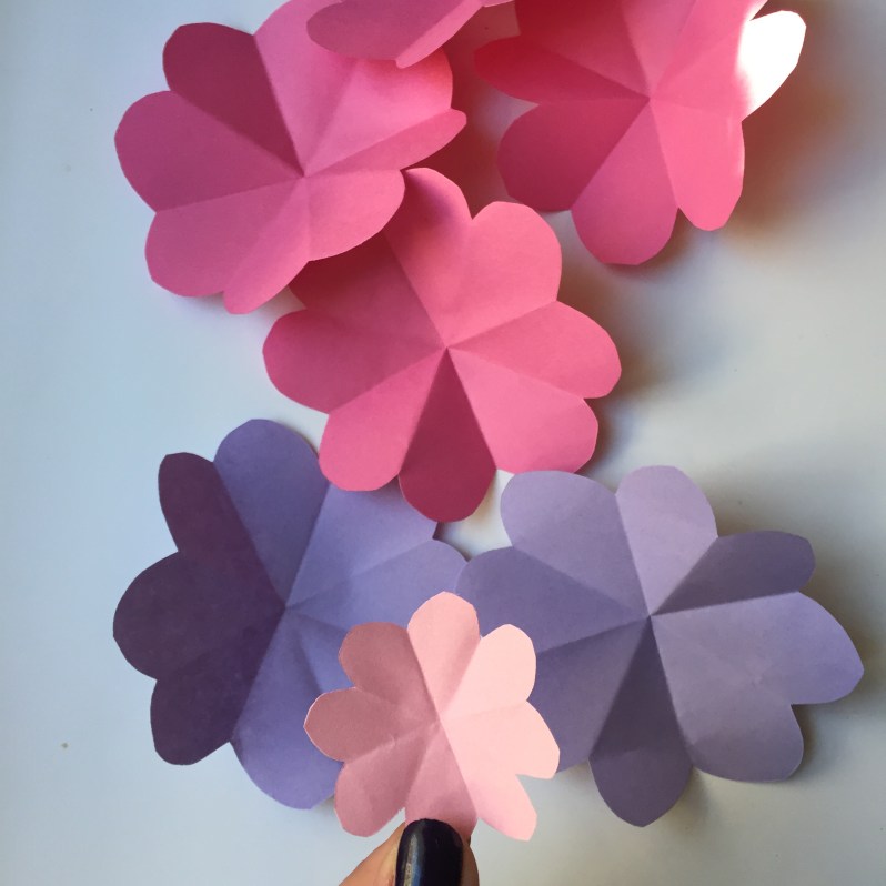 J’ai ensuite réaliser 8 fleurs plus petites en rose clair, pour faire l’intérieur de mes fleurs.