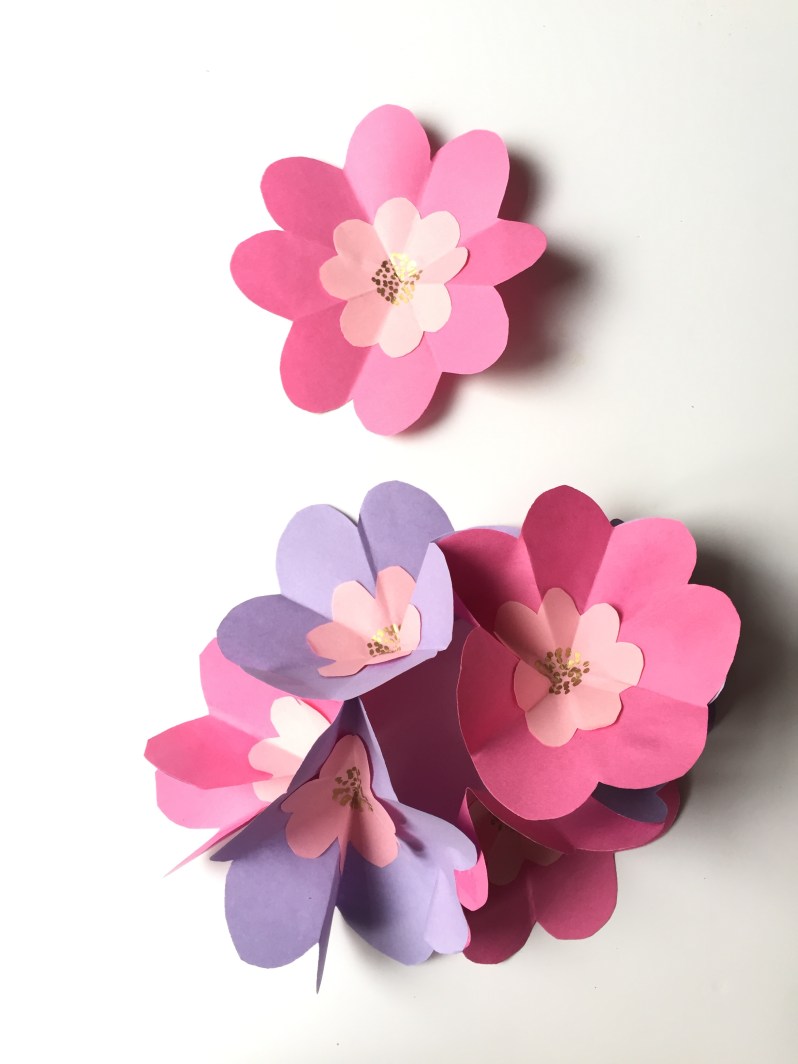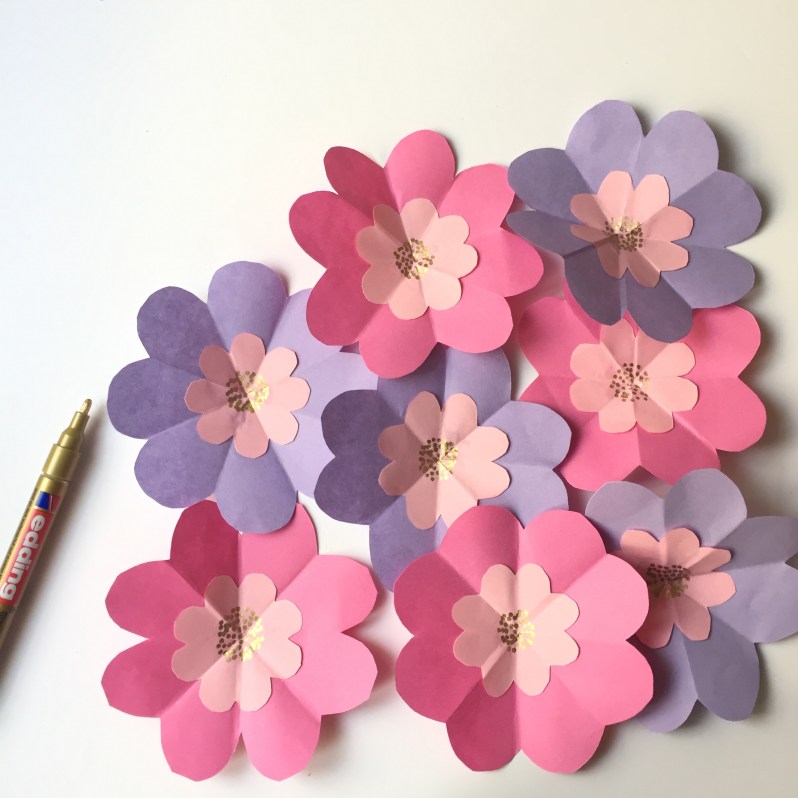 Puis on les colle dans chaque fleur pour obtenir nos fleurs bicolores.