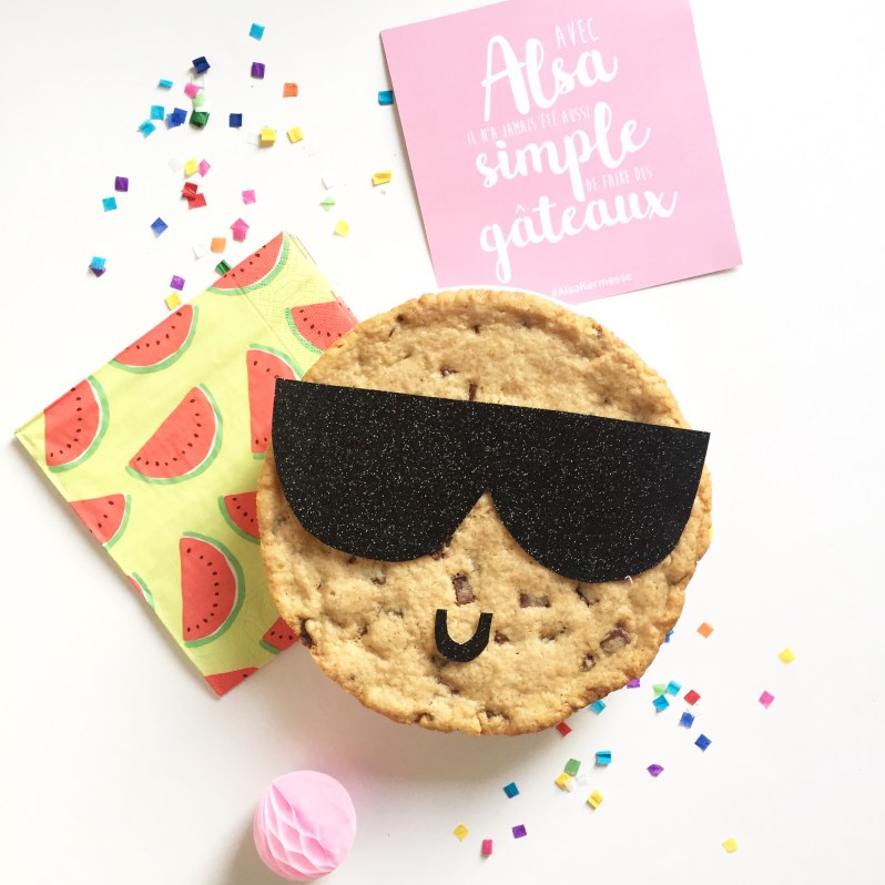 J’ai ensuite décoré très simplement mon cookie géant avec du papier découpé pour avoir un joli smiley 😉