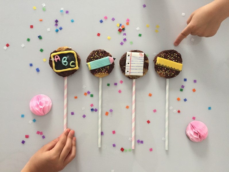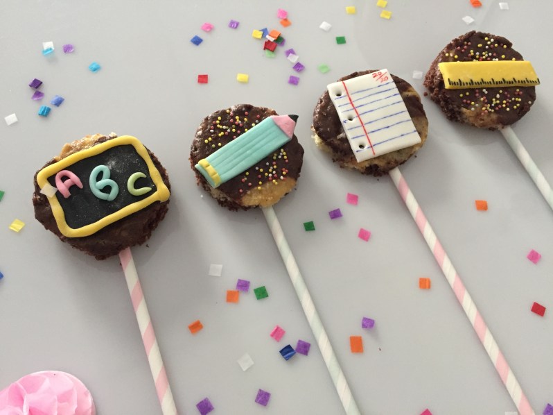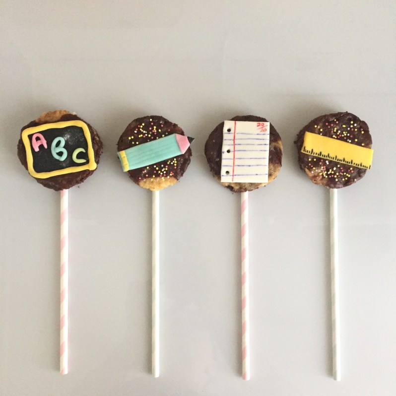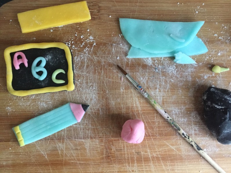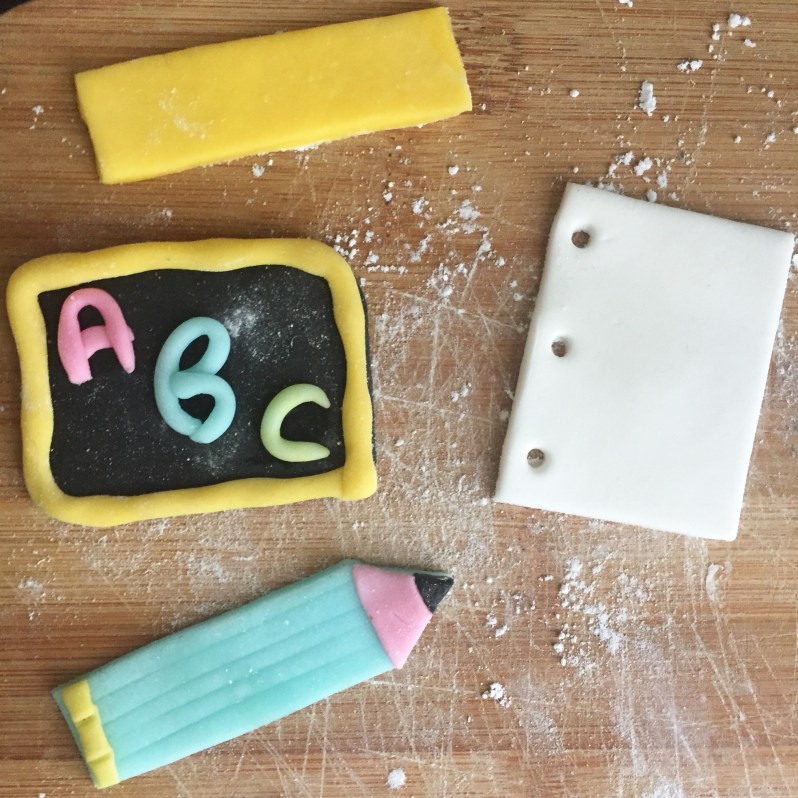 J’ai préparé des pailles colorées et des formes en pâtes à sucre rappelant l »école!