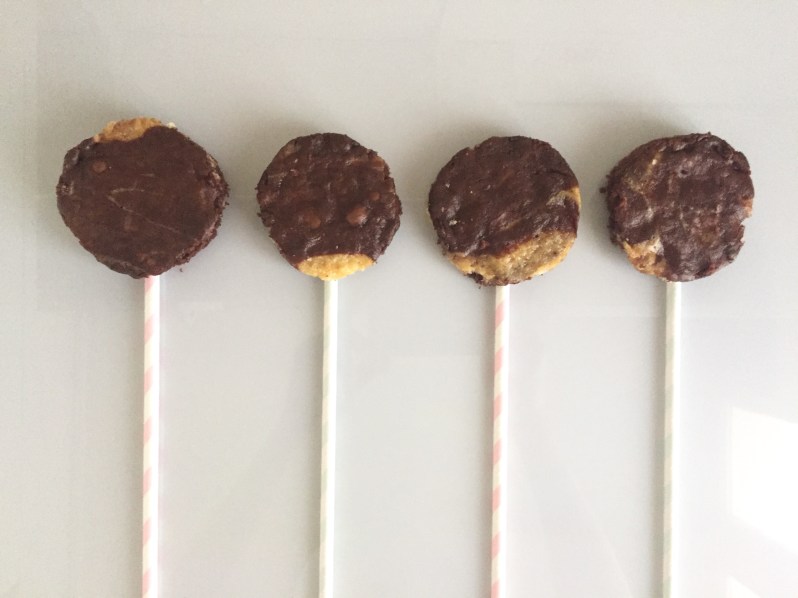J’ai choisi d’innover et j’ai emporte-piècé mon gâteau avec des moules ronds pour faire des sucettes de gâteau.