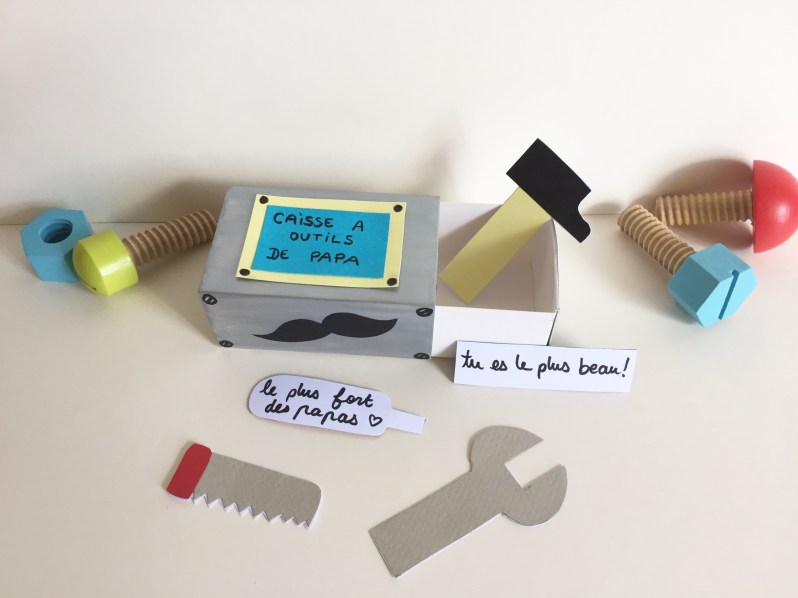 Il s’agit d’une boîte à outils avec de petits messages pour son super papa.