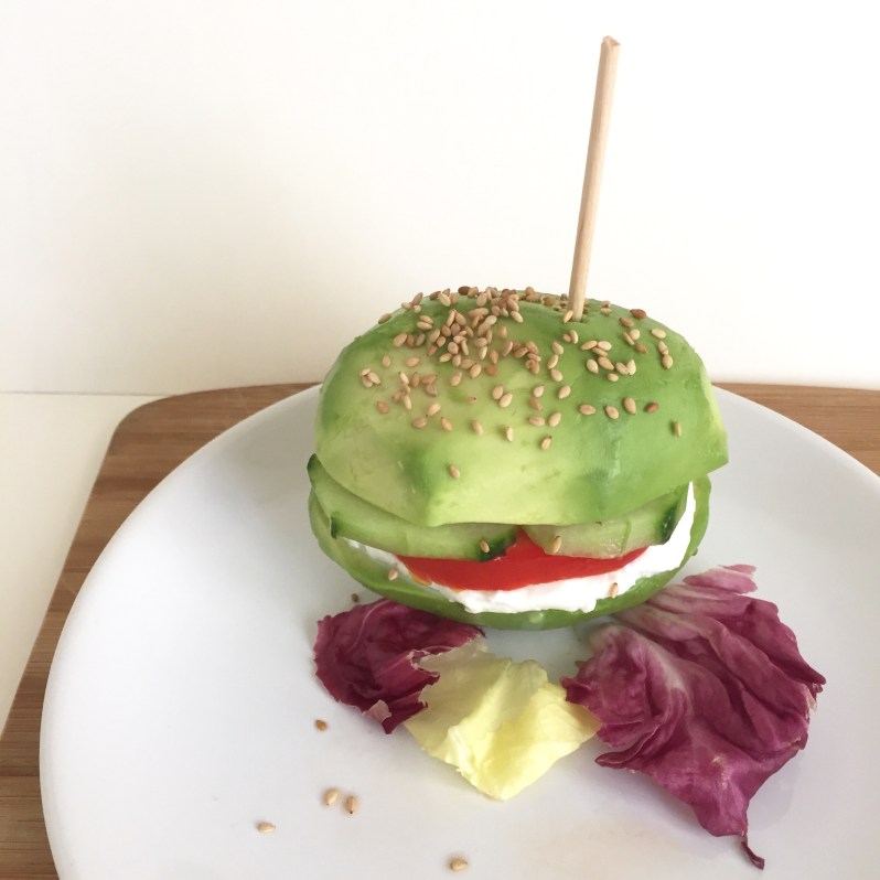 Venez ensuite déposer vos tranches selon votre goût sur l’avocat comme pour un burger. Vous pouvez bien sûr mettre le reste dans l’assiette 😉 Ajouter quelques herbes ou mieux encore, du basilic frais!