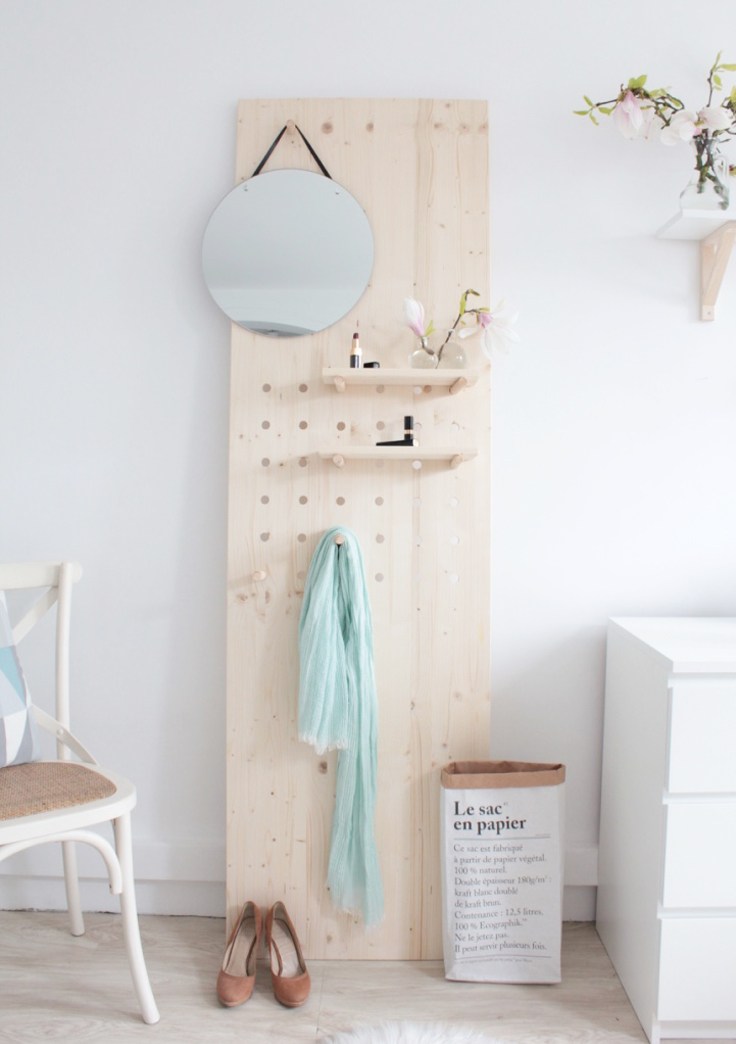 Je suis archi fan des peg boards en bois que l’on fait avec plein de trous comme les premiers car on peut déplacer les éléments à volonté et peindre comme on le souhaite!