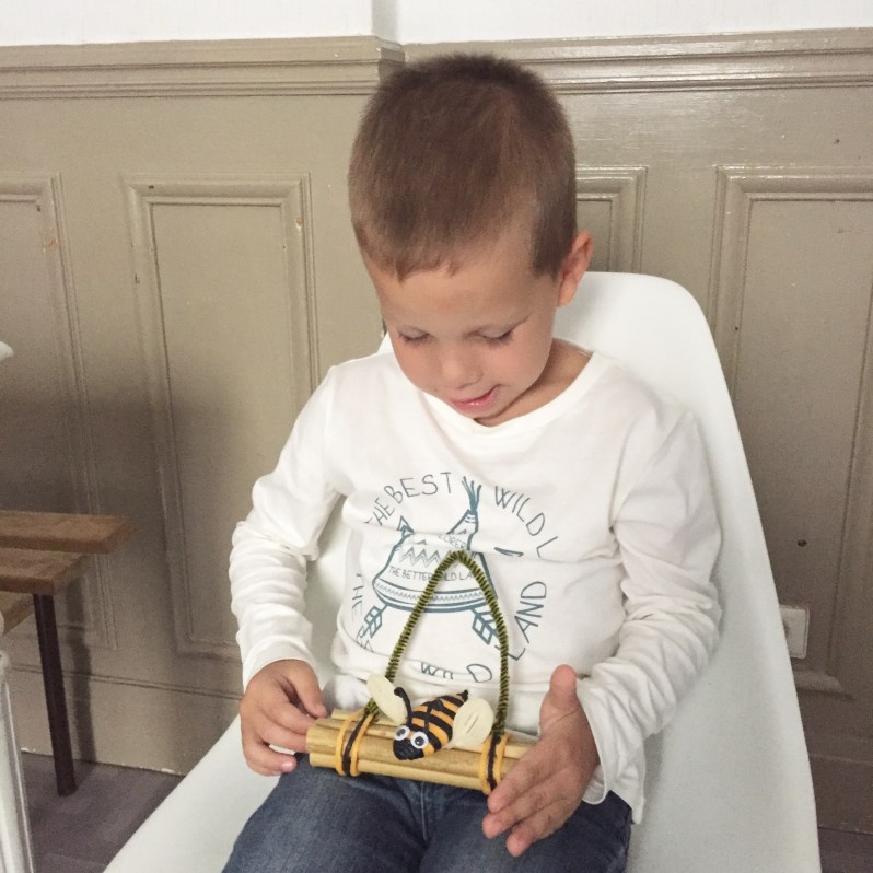 Maé était tout fier de si bien réussir! Nous avons ensuite fait la ruche en bambou et tadam!