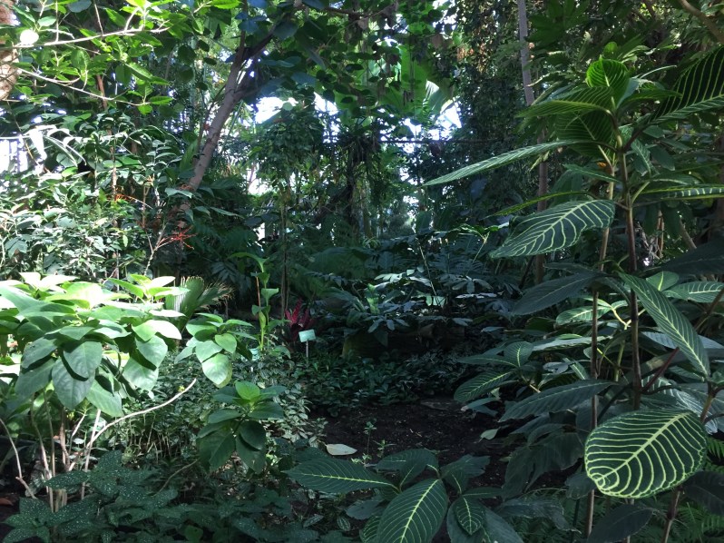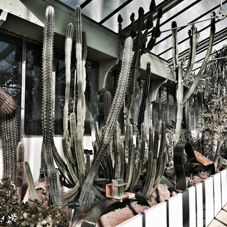 On connaît bien le Jardin des Plantes car nous y allons souvent et nous connaissons bien aussi la ménagerie des animaux mais nous n’étions jamais allés visiter les serres et je tenais à y aller pour voir cette jungle! Je ne regrette pas puisque nous avons pu voir avec Maé au fil des 4 différentes serres, des arbres comme des bananiers, des cacaoyers (transition idéale avec la semaine du goût!), mais aussi des cactus, dans la partie désert, très impressionnant avec la chaleur, etc