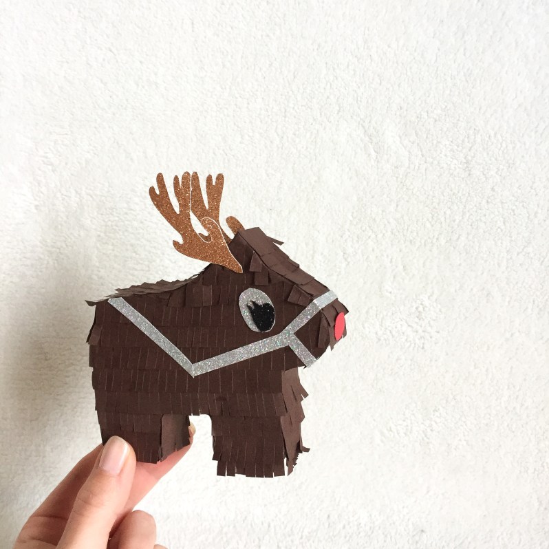 Comme je suis une grande grande fan de pinatas en tout genre, j’ai eu envie d’en faire une petite, qui pourrait être trop mignonne dans un sapin ou sur une table de fêtes! D’ailleurs je pense en faire une ou deux autres, un bonhomme en pain d’épices et/ou des formes de bonbons de Noël !