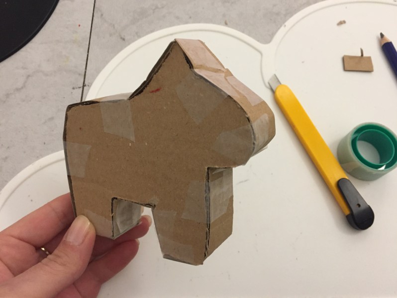 Puis on fait de même avec la seconde face du corps, j’ai ajouté quelques touches de scotch à l’extérieur aussi.