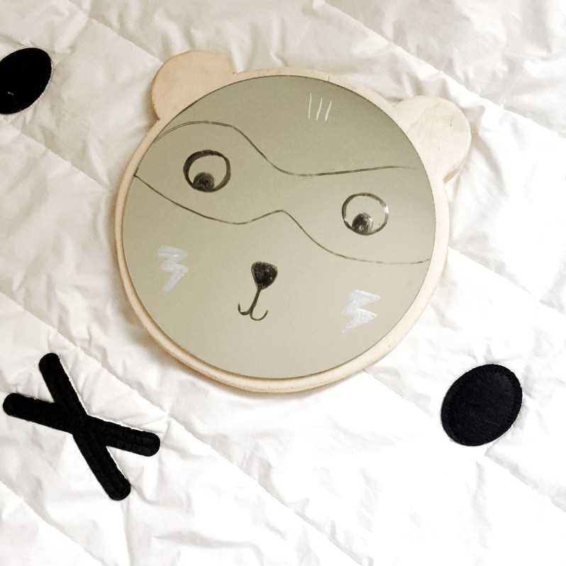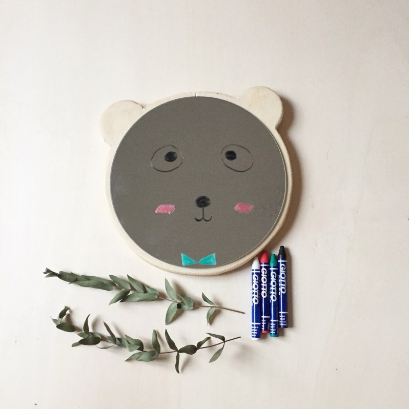 Donc pour nos petits miroirs, les enfants pourront s’amuser à dessiner différents visages et yeux, des masques de supers héros etc 😉