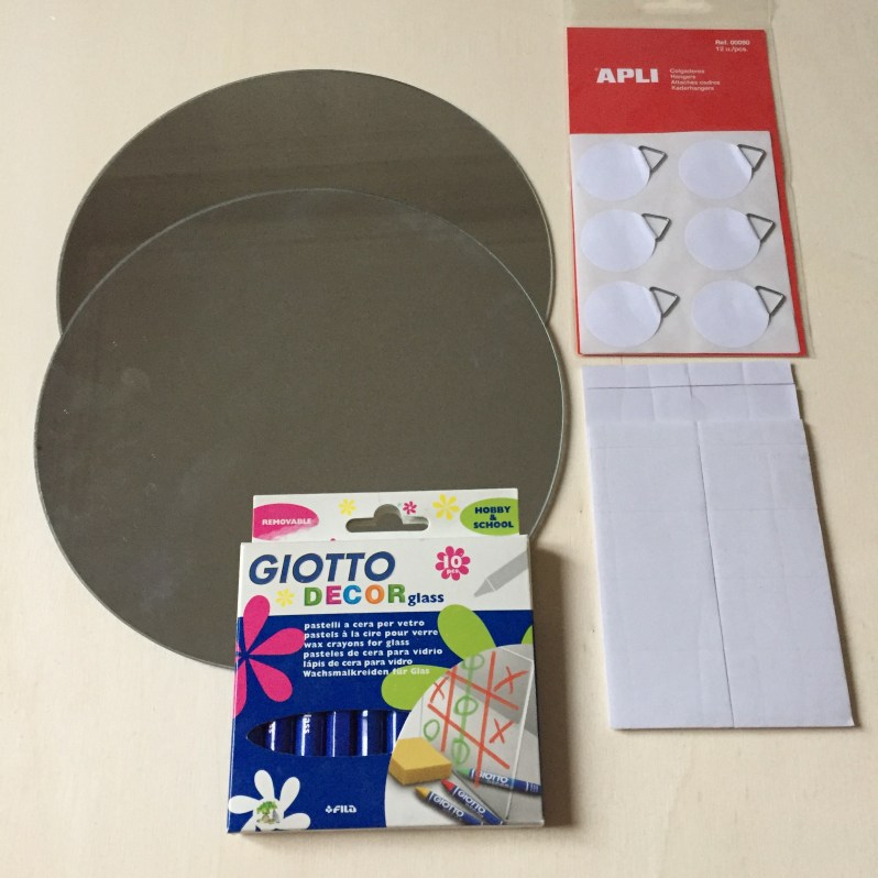 Il vous faudra également des miroirs ronds (les miens mesurent 20 cm de diamètre et sont vendus avec les adhésifs), vous pouvez en trouver ici.