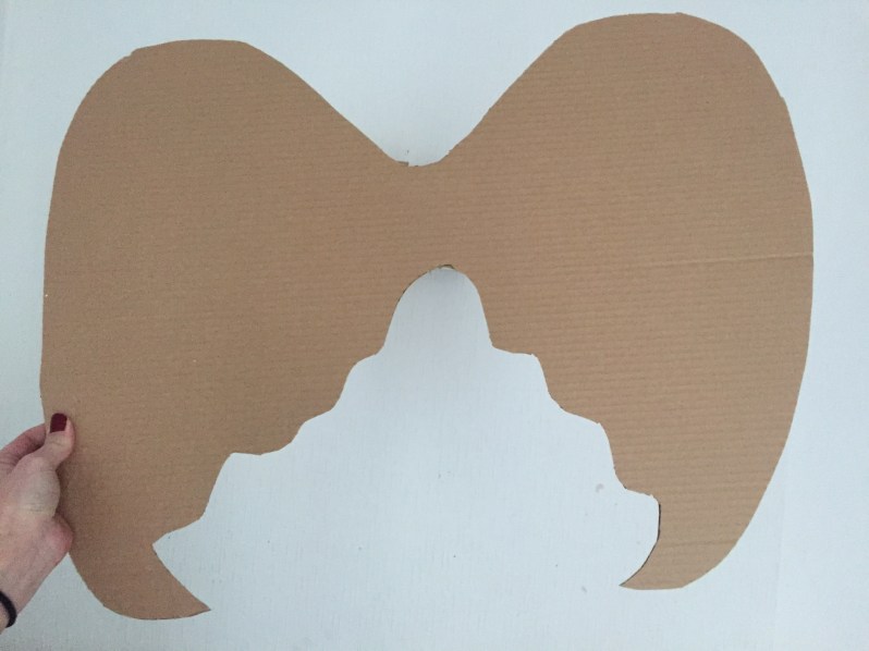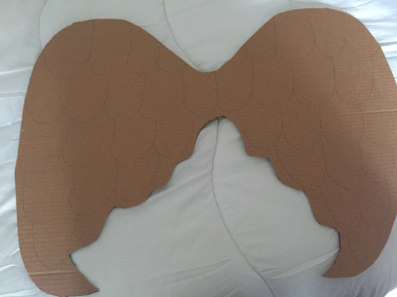 Il vous faut une grande planche de carton, j’ai commencé par dessiner des ailes à main levée au crayon, que j’ai ensuite découpé au cutter.