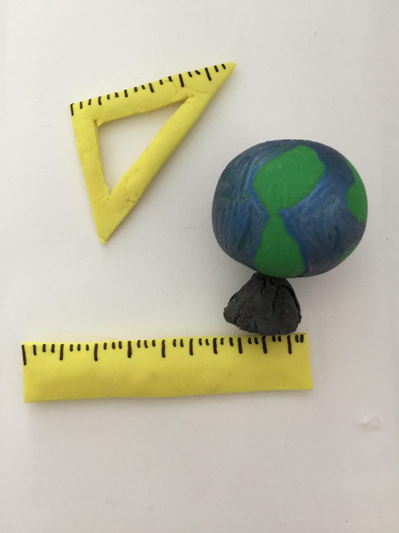 En parallele, j’ai fait en pâte durcissante des éléments comme un globe pour le bureau, une règle et une équerre 😉 Comme toujours j’ai utilise la pate durcissante DAS.