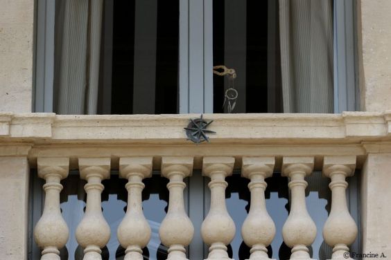 On peut observer aujourd’hui à son balcon, au 95 un C frappé d’un soleil, et une plaque à son nom figure dans le jardin.