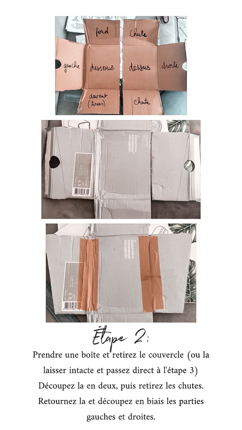 J’y ai passé un peu de temps car j’ai tout fait au pif mais je vous montre tout en pas à pas et c’est vraiment pas difficile, si vous avez une boîte à chaussures et une imprimante il vous fera à peine quelques minutes pour la version facile!