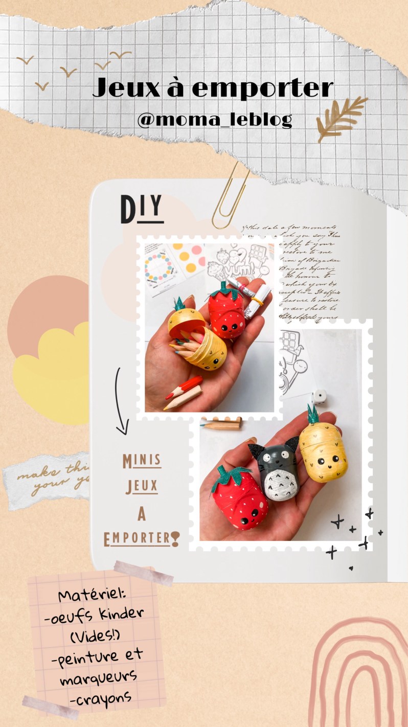 Il vous faudra pour réaliser ces minis jeux à emporter des oeufs Kinder vides, easy avec Pâques qui vient de passer.
