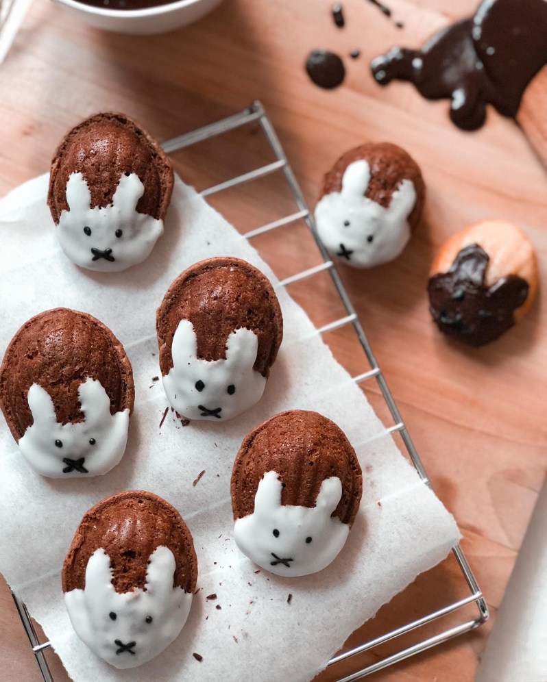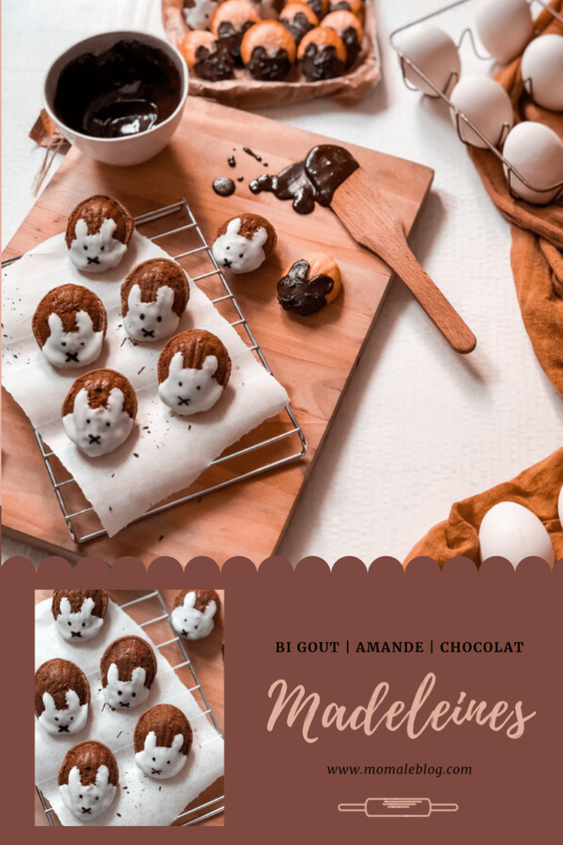 Je vous propose une variante de la recette classique de madeleines, fournée chocolat et amande 🙂 Avec une petite déco trop chou à l’effigie de Miffy le lapin et de petits oursons.