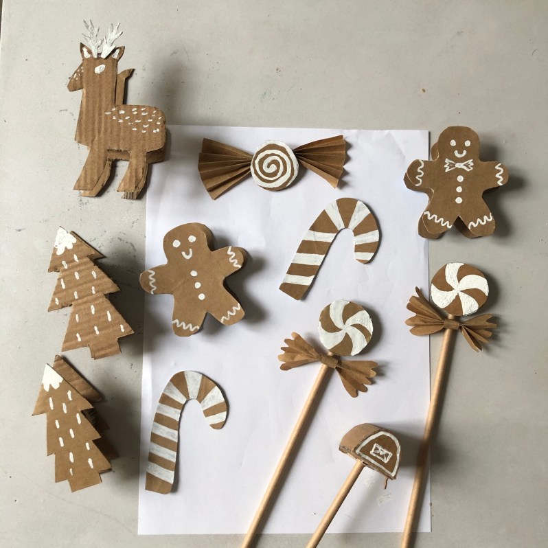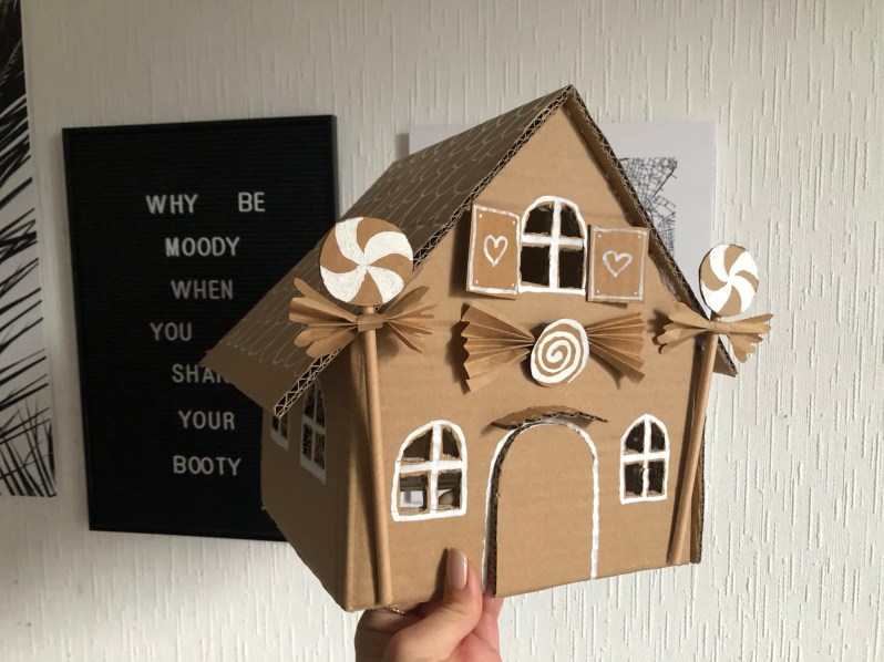Ensuite quand vous avez fait suffisamment de petites cases, attaquez la déco à coller sur la maison, des bonbons, des sucettes, des petits volets etc… amusez vous c’est la partie la plus fun!