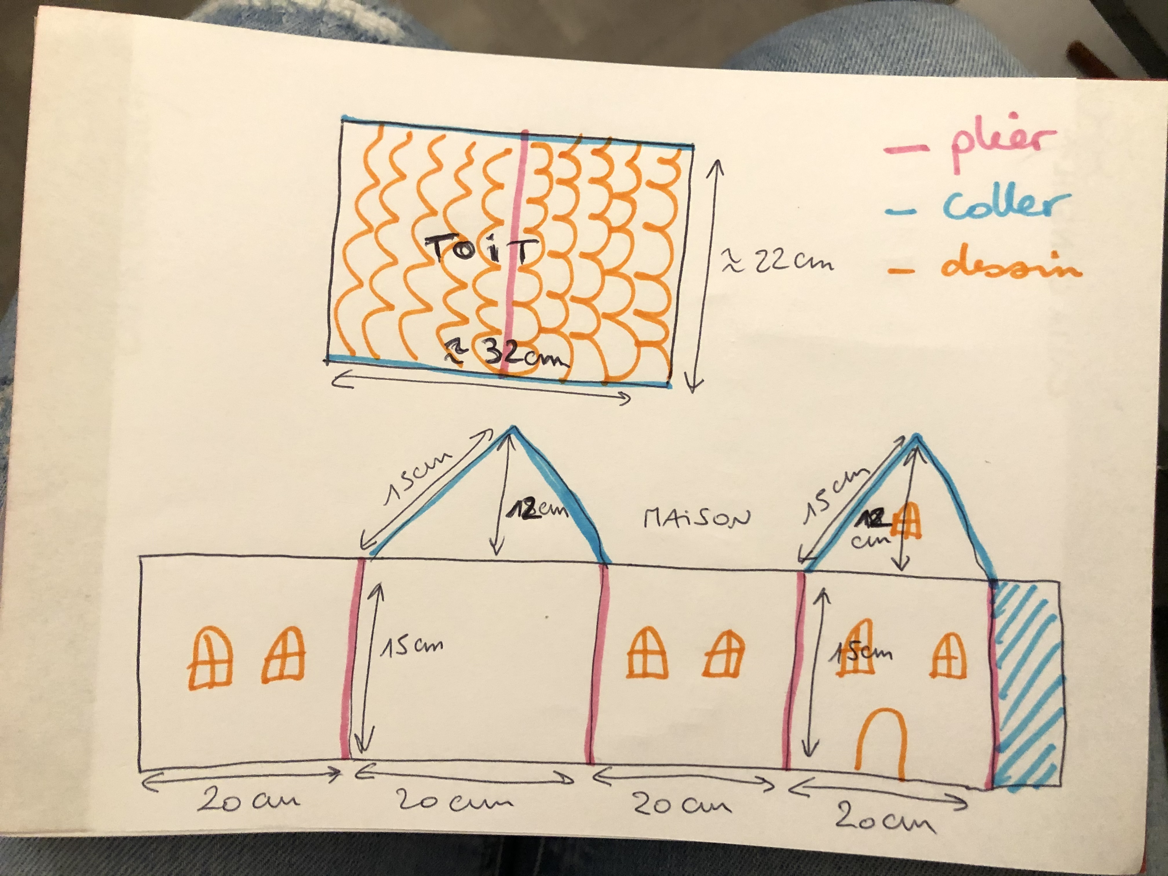 J’ai ensuite découpé un grand rectangle que je plie en deux pour le toit.