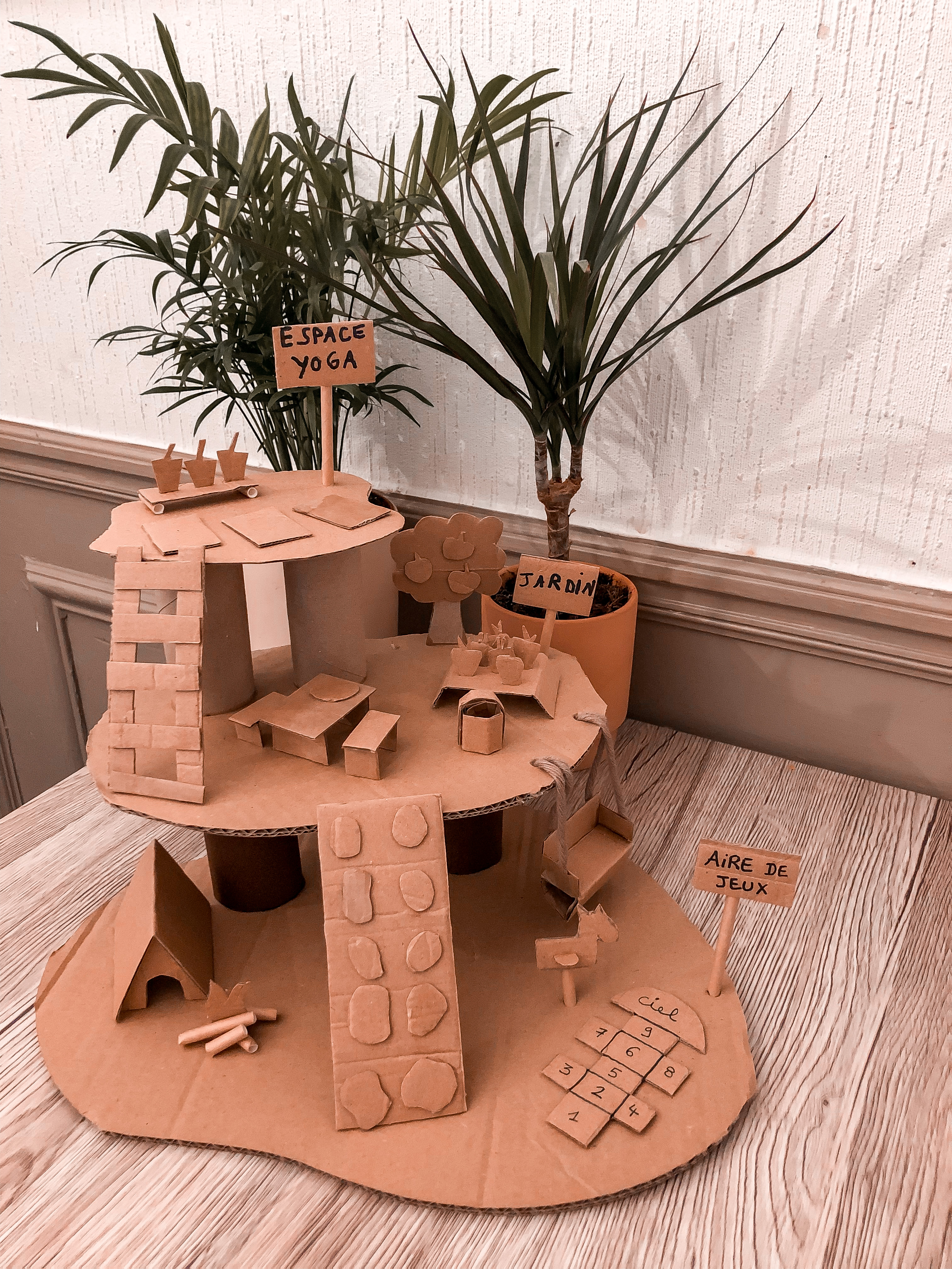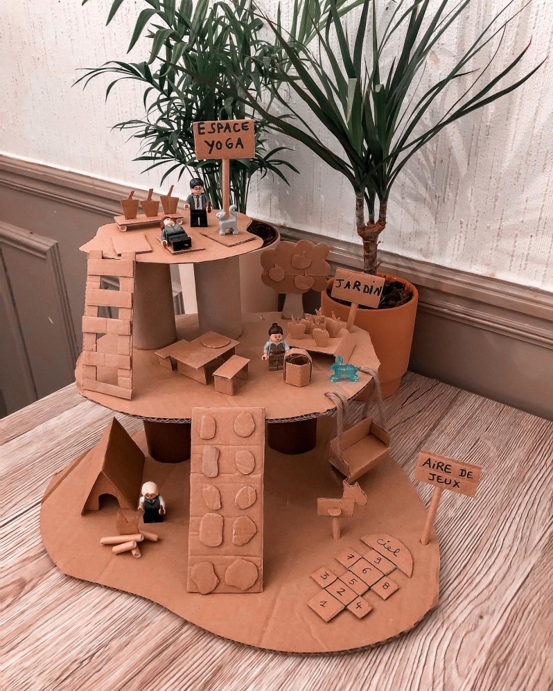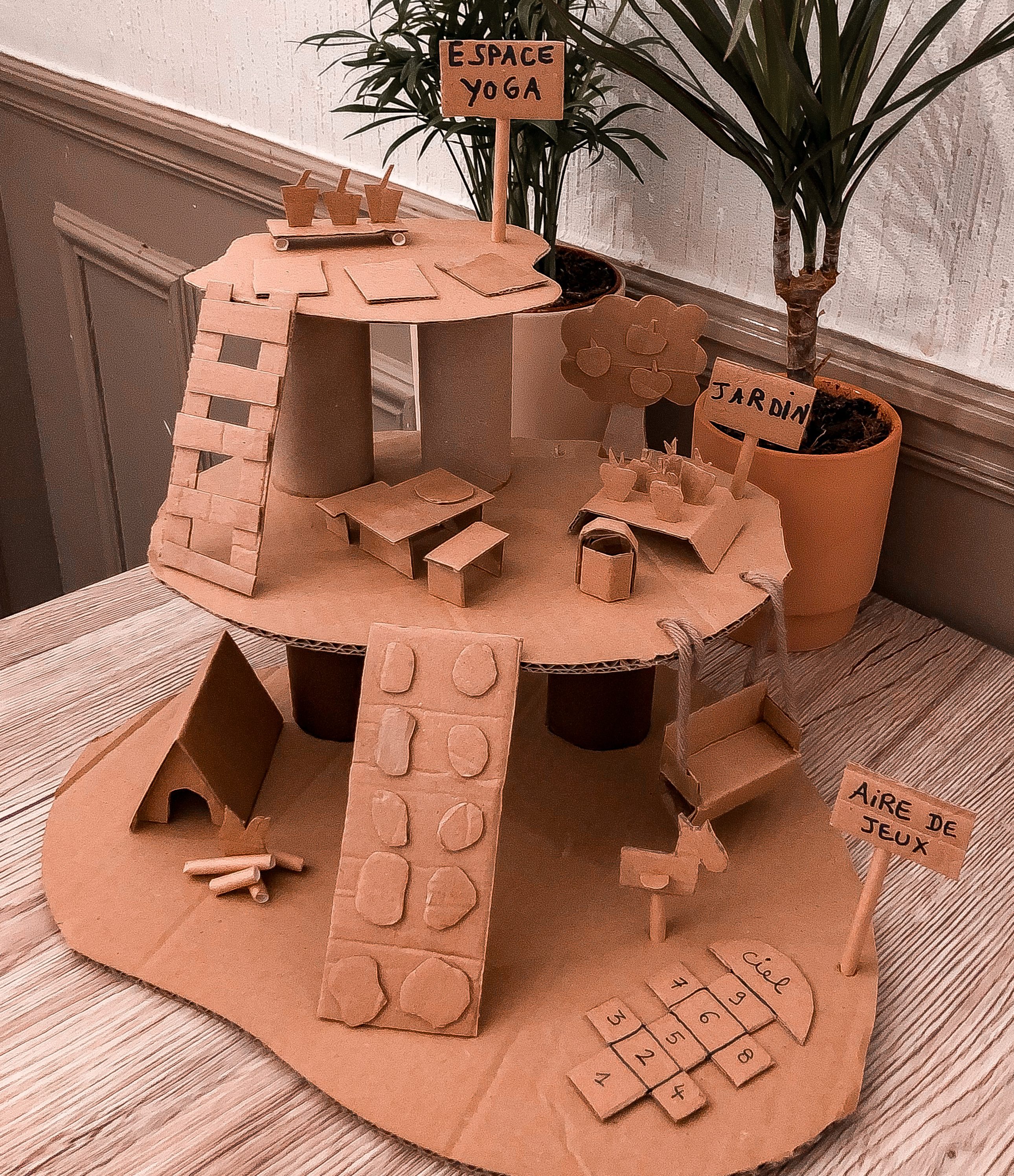 Je ne le répèterais jamais assez, le carton c’est la vie! J’ai encore eu confirmation hier avec un DIY improvisé, merci le temps horrible de ce week-end.. Nous avons crée une sorte de cabane de forêt en carton, avec pour seul matériel, des chutes de carton, des rouleaux de papier toilette, des pailles recyclées et de la colle!